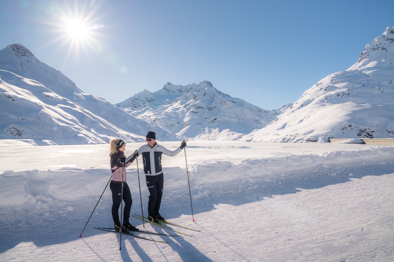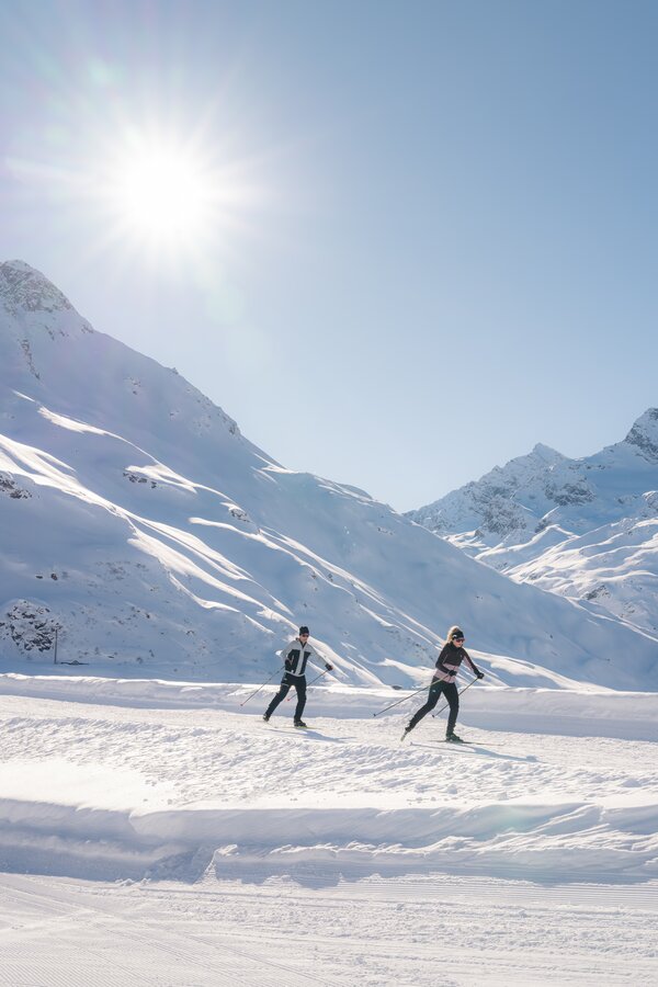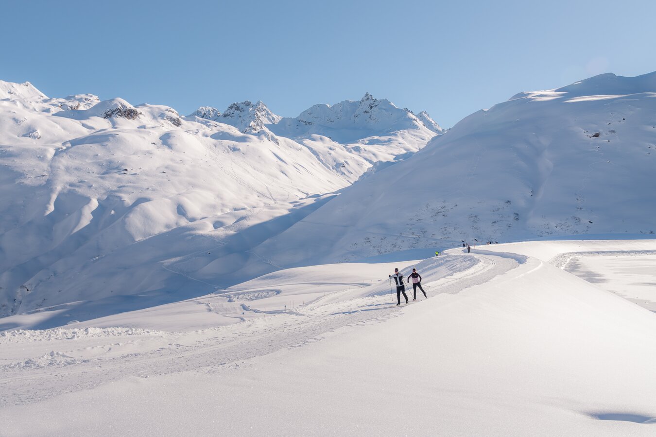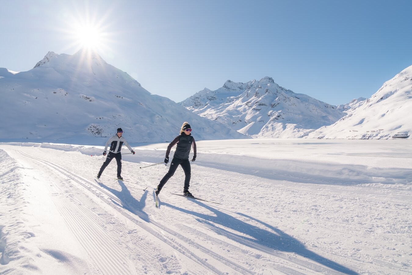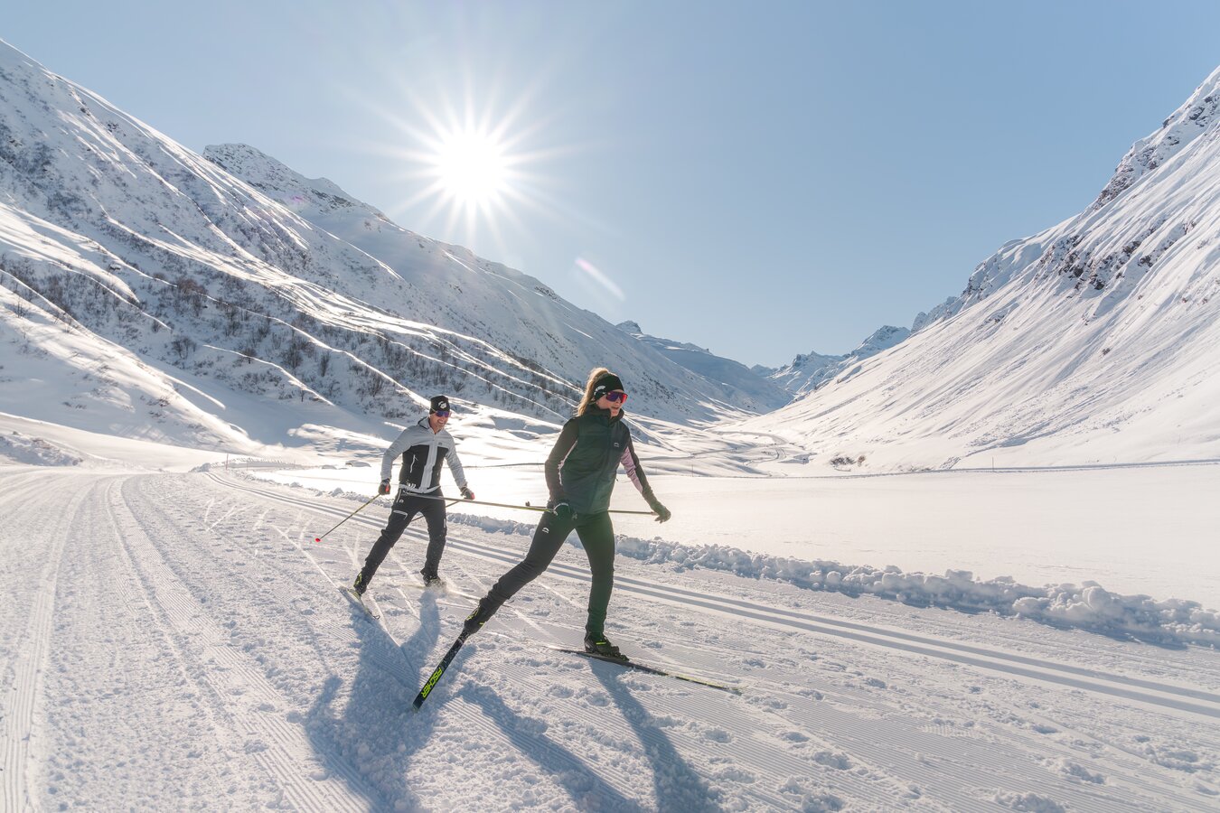 Die 2 Kilometer lange Dammloipe auf der Bielerhöhe führt entlang der imposanten Silvretta-Staumauer. Atemberaubende Panoramen machen sie besonders.
