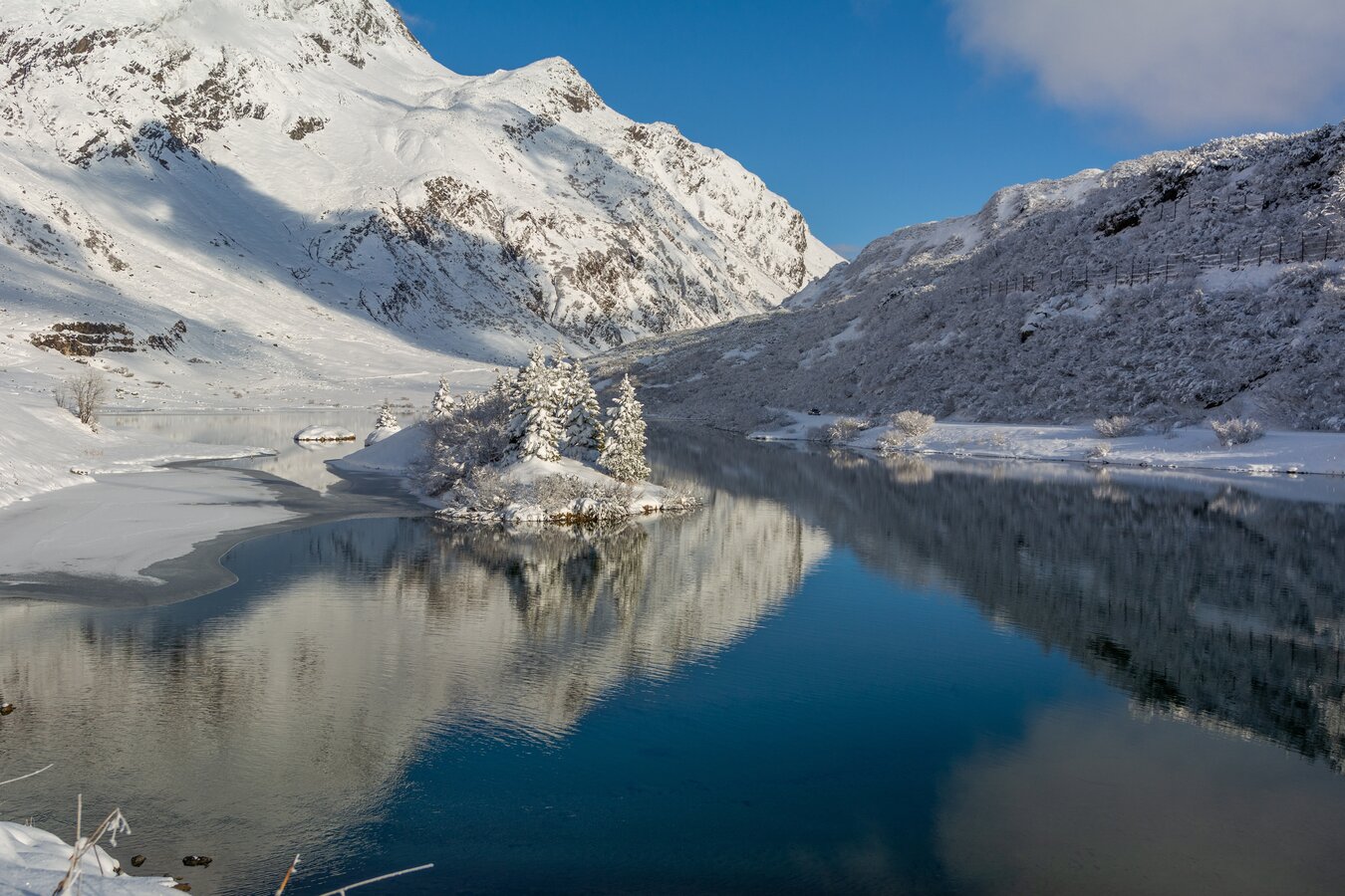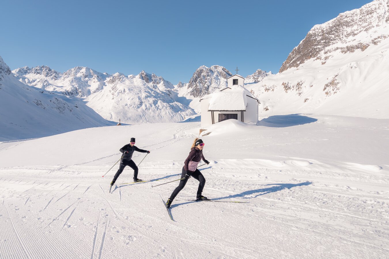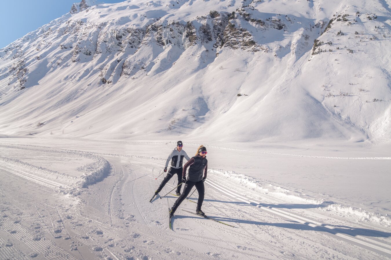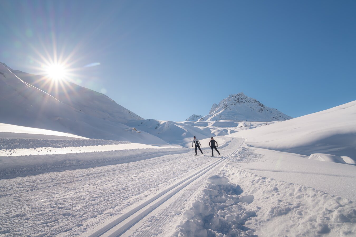 Die 2 Kilometer lange Dammloipe auf der Bielerhöhe führt entlang der imposanten Silvretta-Staumauer. Atemberaubende Panoramen machen sie besonders.