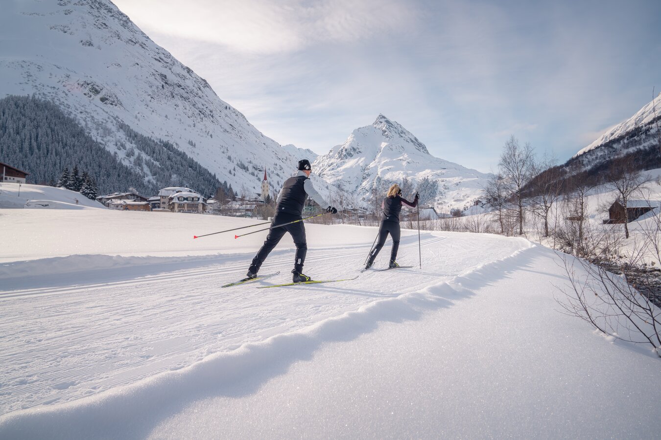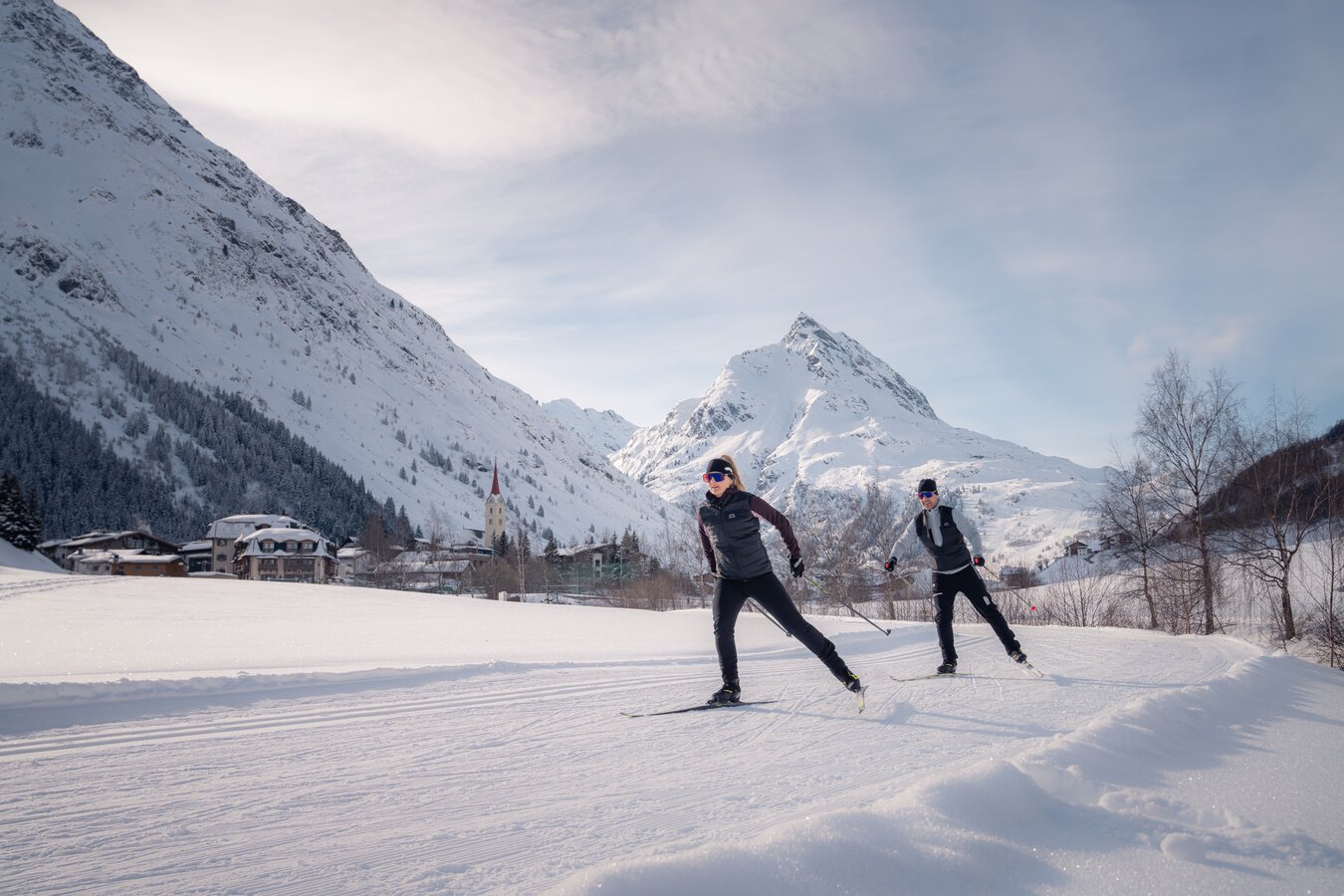 Die Galtür-Wirl Loipe startet im malerischen Galtür, dem höchstgelegenen Ort im Paznaun. Auf 5,5 Kilometern führt sie taleinwärts durch verschneite Felder entlang der Trisanna bis nach Wirl auf 1.621 Metern. Ein kleiner Schlenker am Skigebiet Silvapark sorgt für Abwechslung, bevor es auf der gegenüberliegenden Seite talauswärts zurückgeht. 2,2 Kilometer der Strecke sind bis 22:00 Uhr beleuchtet. Mit moderaten Steigungen ist die Loipe ideal für sportliche Genusstouren. Anschluss talaus: L.4 Tschafein Loipe, Anschluss talein: R.1a Route Vermunt 1 und R.2 Route Zeinis-Kops.