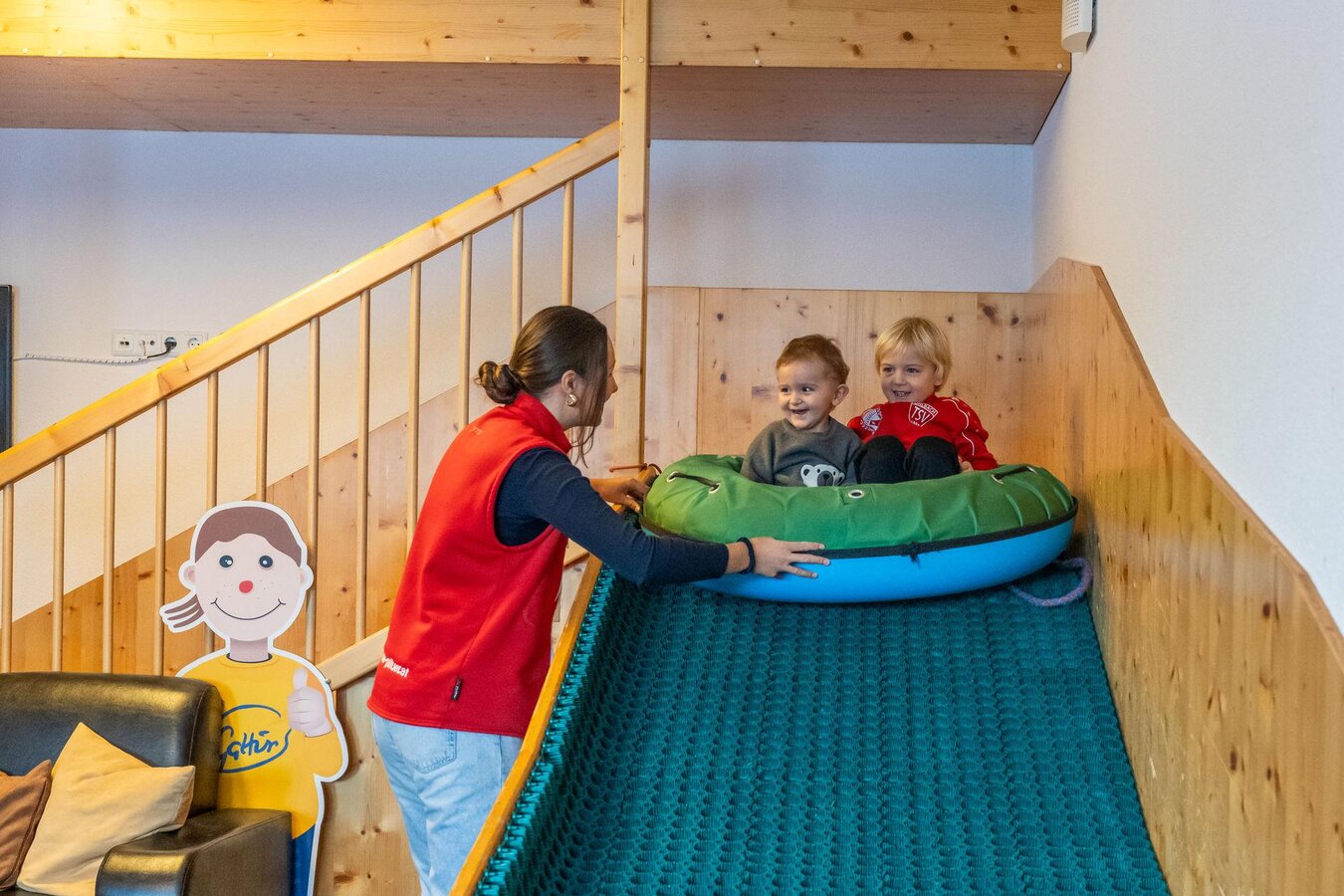 Fun and games at "Zwergerlwelt" Kindergarten Parents can only truly relax if they know their children to be in safe hands. That’s why the “Zwergerlwelt” guest kindergarten offers professional childcare for your little angels. Your kids will love to build snowmen, climb and play with their new friends! The kindergarten is open to children aged 18 months and above. Babies under 18 months on request. Your child carers are looking forward to welcoming your children at the Zwergerlwelt!