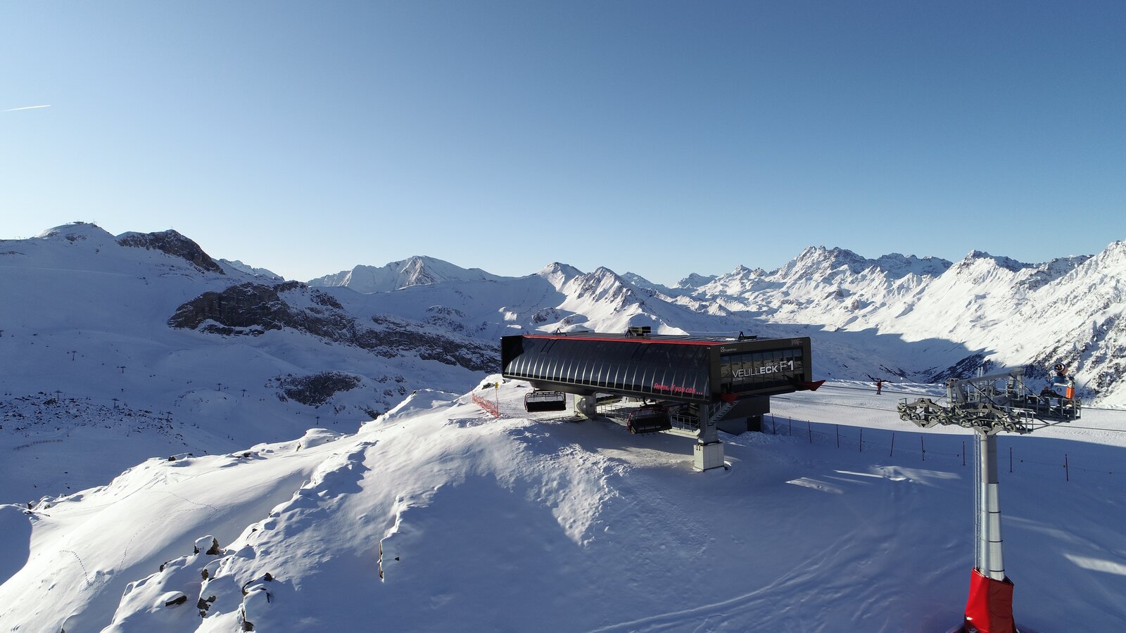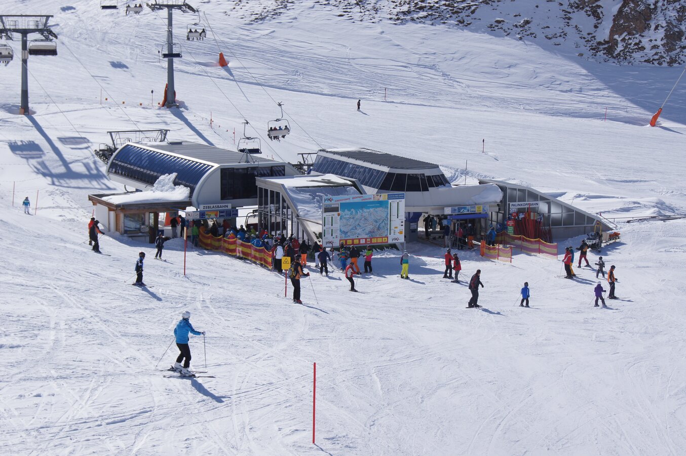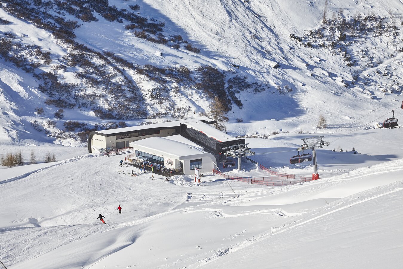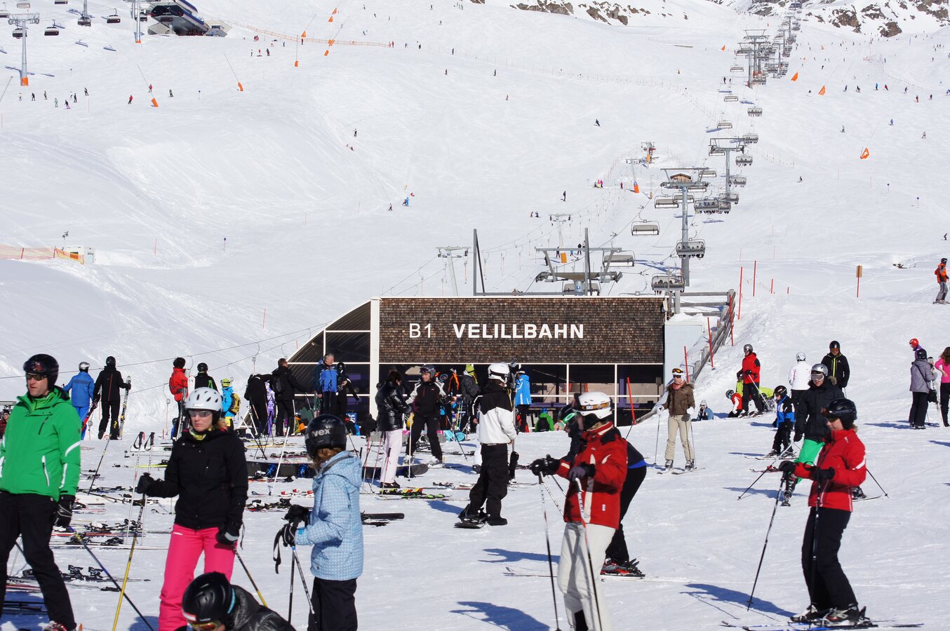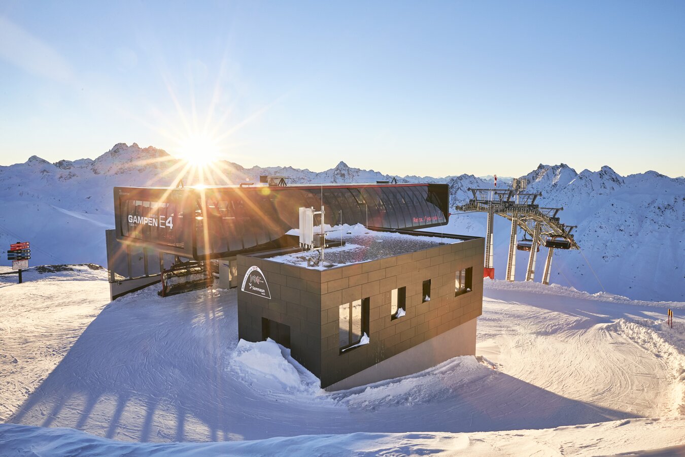 The Silvrettabahn was constructed in summer 1998. It boasts a vertical rise of 961 m, a route distance of 3.938 mand a maximum capacity of up to 3.440 persons/hour. The middle station is located at 1.683 m above sea level. 1,4 Mio. guests per winter season use the facility.