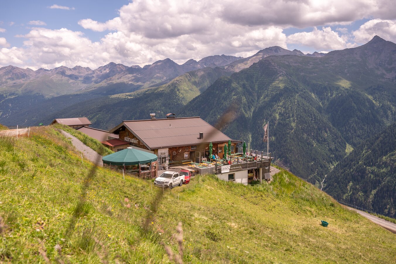 The traditional Sessladalpe lodge is situated at nearly 1,900 meters, about an hour’s walk from the Diasbahn mountain station towards the Niederelbehütte lodge, making it an ideal stopover. In early summer, when the meadows are lush and many mountain herbs are in bloom, the animals graze on the lower Sessladalpe. Later, they move up to the upper Sessladalpe, where you can enjoy homemade cheese, quark, and milk. Up here, nature knows no stress—just pure tranquillity and delicious regional treats.
