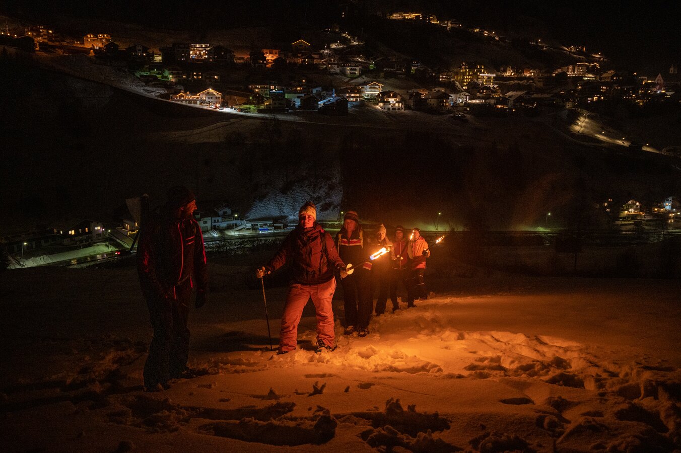 When darkness falls, snow-covered Kappl transforms into a fairytale setting. Every Tuesday at 6 p.m., a special tour begins: equipped with torches and snowshoes, participants climb around 200 metres uphill. At the destination, a breathtaking view of Kappl opens up, with its sea of lights sparkling below.